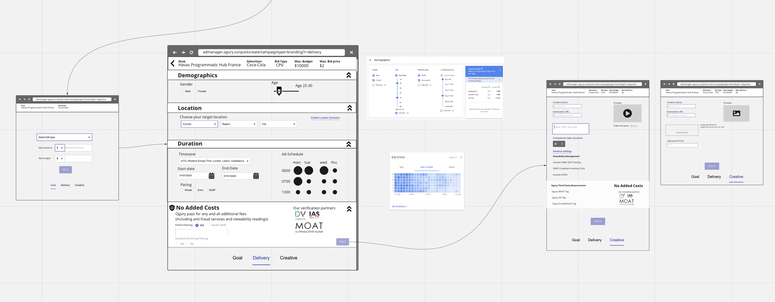 The challenge: design an intuitive form flow for complex inputs (budget, dates, targeting, creatives) without direct access to end users, while aligning stakeholder expectations and managing technical constraints.