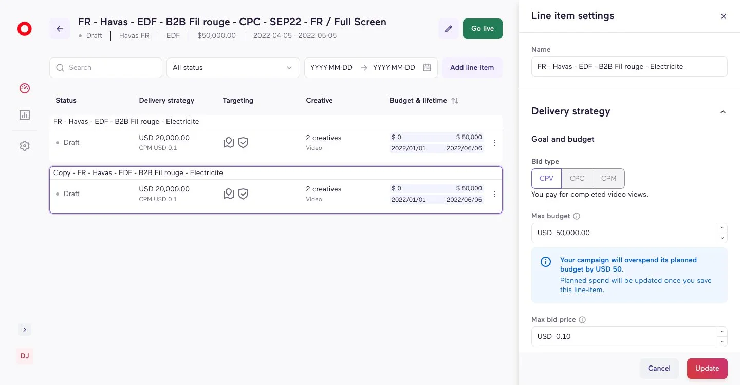 Stakeholders (AdOps team) preferred drawers for context visibility while editing line items