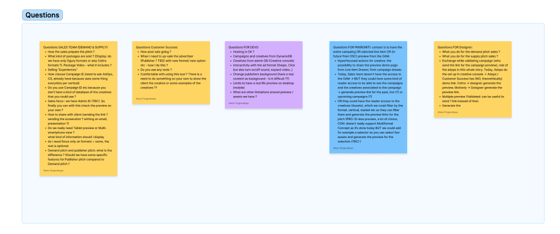 Interviewed 4 sales team members (US, EMEA, APAC) and 2 designers to understand current workflows, pain points, and ideal solutions. Key finding: product marketing had curated creatives in Airtable, but sales never knew about it—a visibility problem disguised as a features problem.