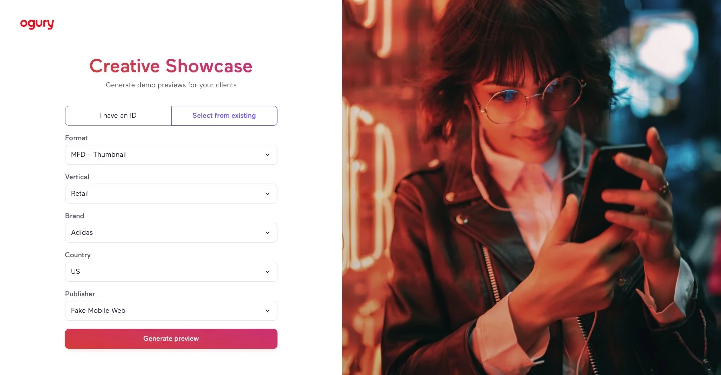 Ogury's sales team needed to show clients how ads would look across devices, environments, and publishers. Three separate internal tools existed, all inadequate.