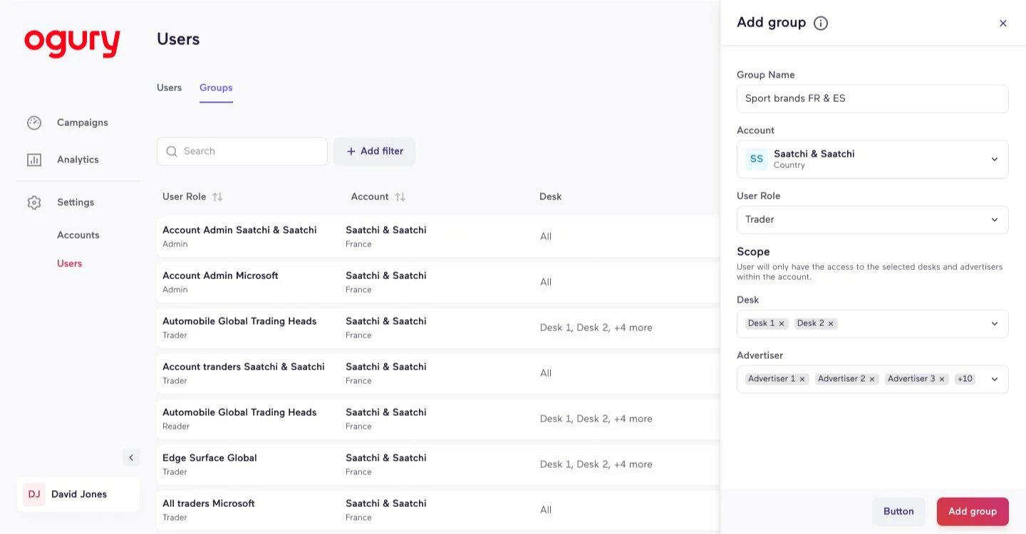 Ogury's platform served traders managing ad campaigns for different organizational levels. The existing permission system only supported read and edit roles—too coarse-grained for real trading workflows.